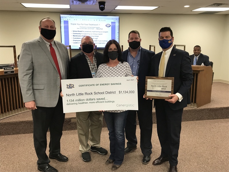 Faculty and staff have chalked up more than a million dollars worth of energy-saving behavior. Their energy-efficient changes have achieved significant savings — and those good habits have earned North Little Rock School District national recognition by earning Cenergistic’s Energy Excellence award which was presented to the district at their April 15th board meeting.