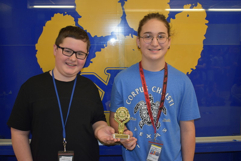 The students will be recognized with certificates for participation. The top participants from the Sixth Grade Campus were Paxton Bowsman and David Wood. They will be receiving a trophy and a silver pin. The silver pin is awarded to those students who place in the top 10%.