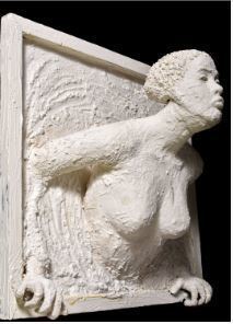 Edwards earned third place, garnering an $8,000 scholarship. The title of her piece is called "Emerging Embrace." It was submitted in the 3D-Sculpture category, using paper mâché, joint compound, and a wooden frame.